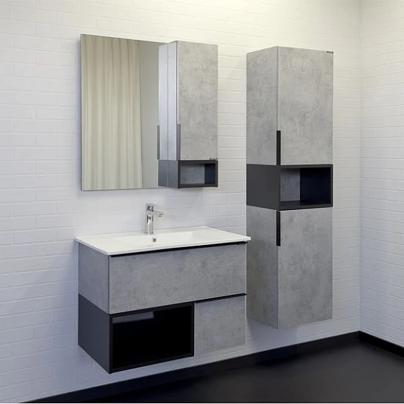 Комплект мебели Comforty Франкфурт 75 бетон светлый/черный матовый (раковина Comforty 75E)