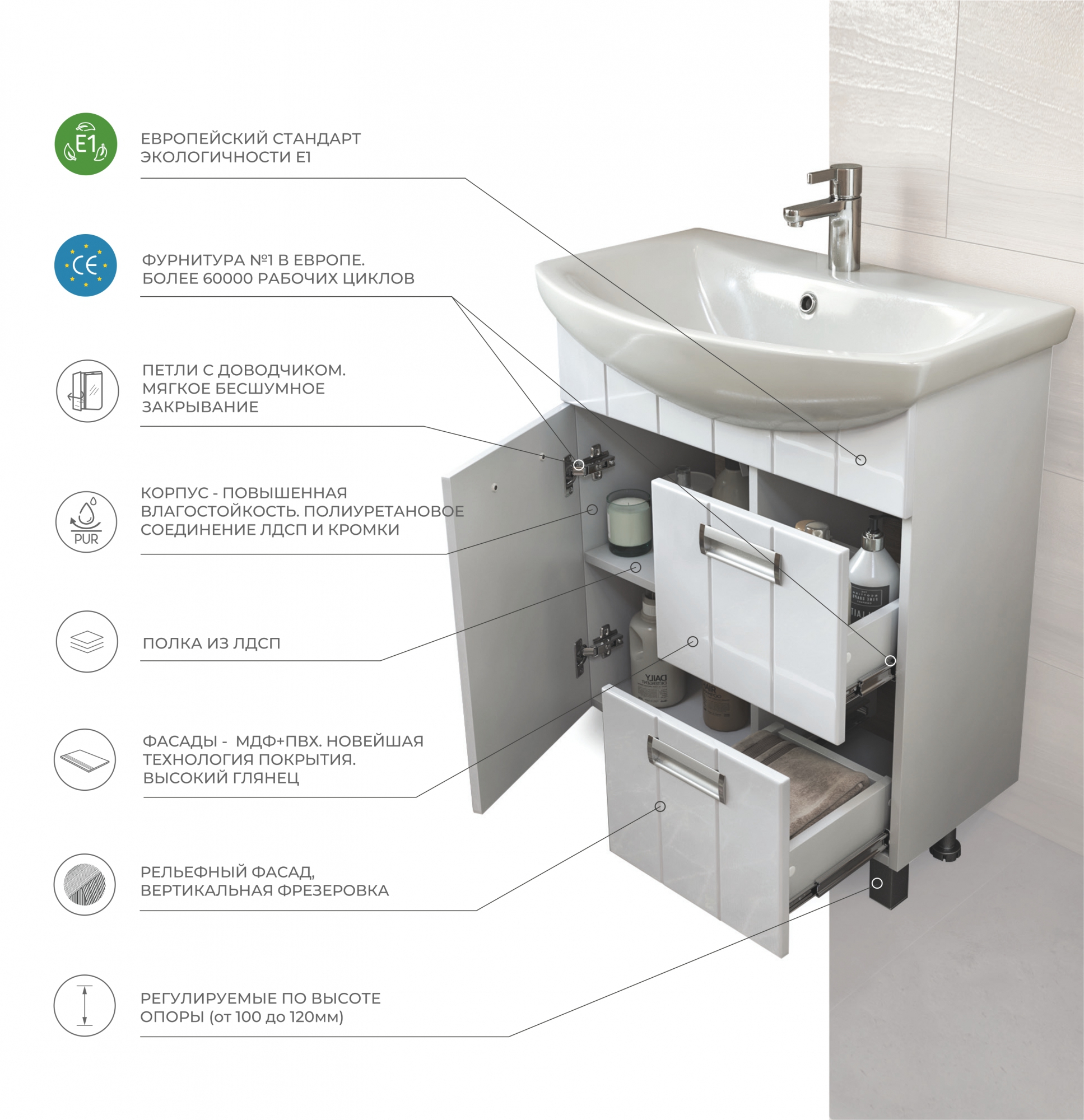 Инструкция для товара Комплект мебели Vigo Diana 70 белый, 1 дверца, 2 ящика, зеркало-шкаф L