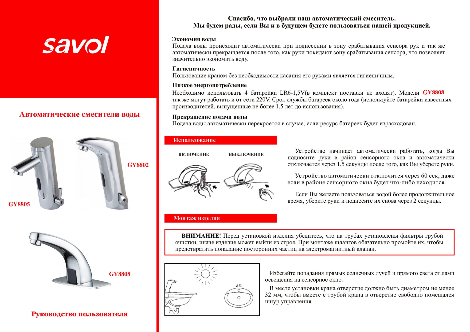 Сенсорный смеситель Savol S-GY880 для раковины хром
