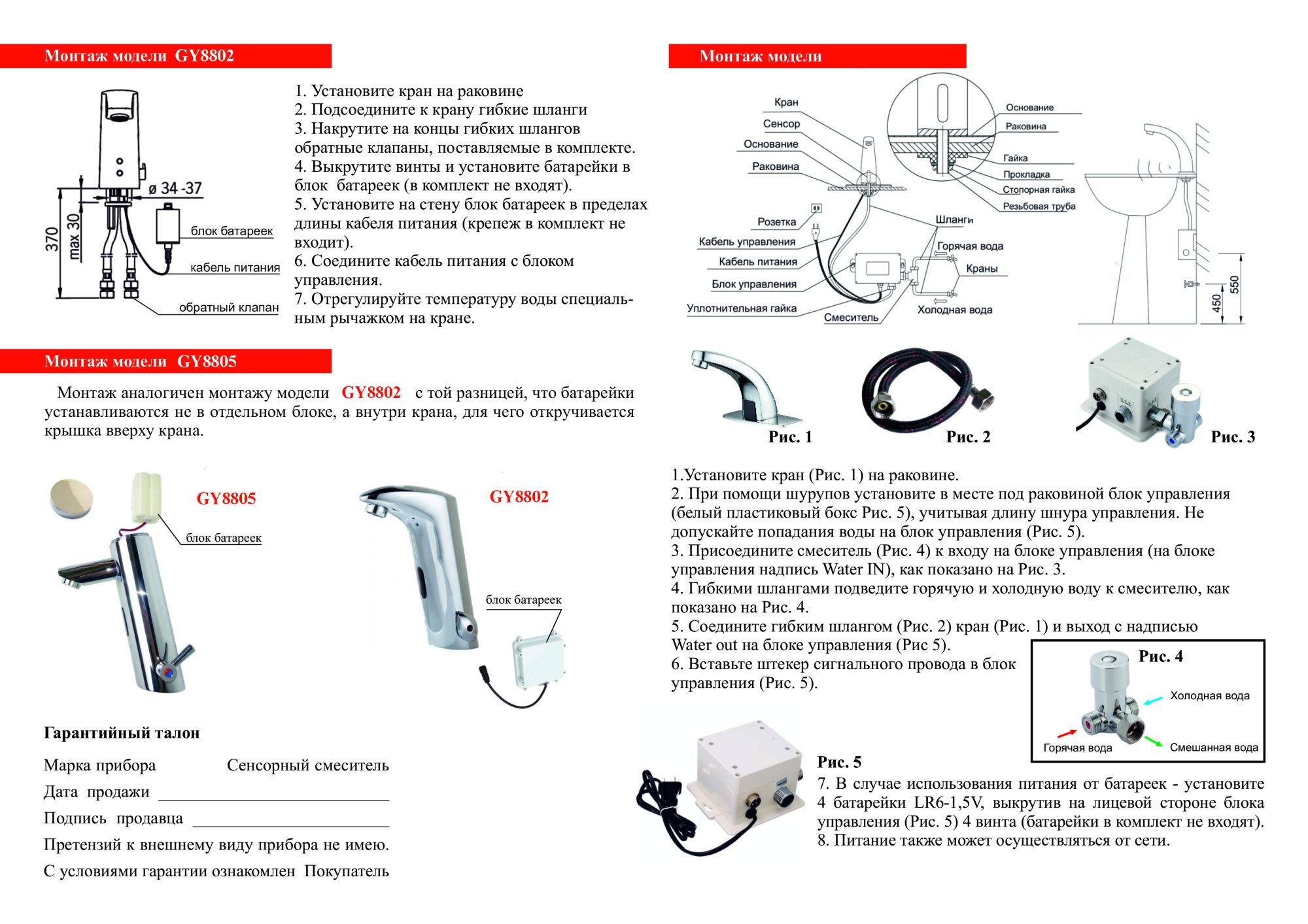Инструкция для товара Сенсорный смеситель Savol S-GY8896Q для раковины графит