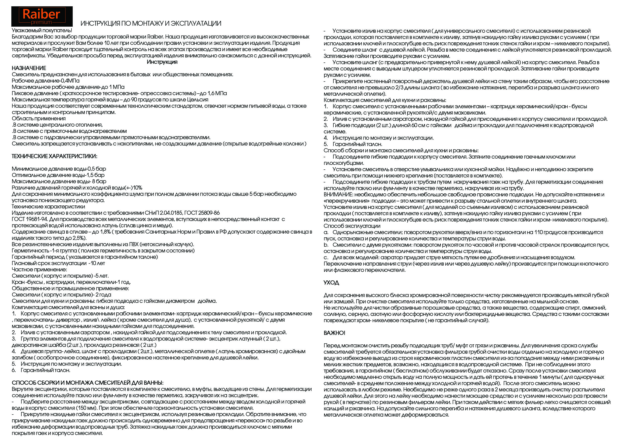Дополнительные функциизащита от перекручивания шланга