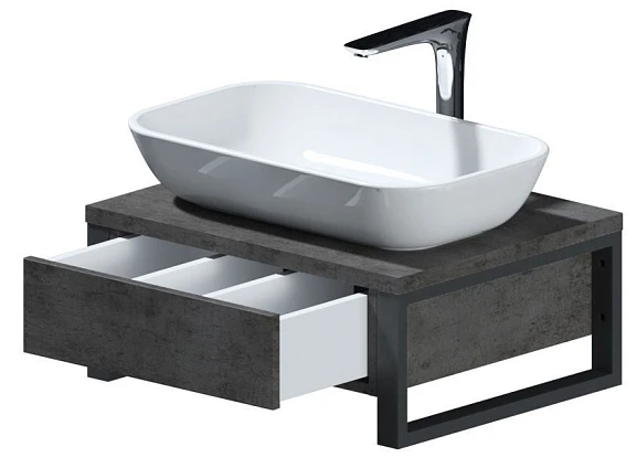 Тумба с раковиной 1Marka Grunge Loft 60П 1в.я бетон темно-серый (с отверстиями) (раковина Infinity 60)