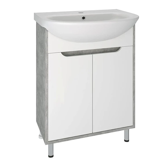 Тумба с раковиной Runo Эко 60 белый/серый бетон