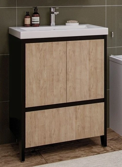 Тумба с раковиной Velvex Klaufs 80 черная/шатанэ напольная с дверцами и ящиком