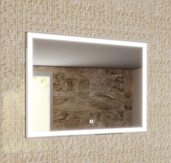 Прямоугольное зеркало имеет подсветку LED с холодным дневным светом, что делает более яркое дополнительное освещение. Так же зеркало имеет функциональный сенсонрный выключатель, который дает возможность пользоваться подсветкой в любой момент.